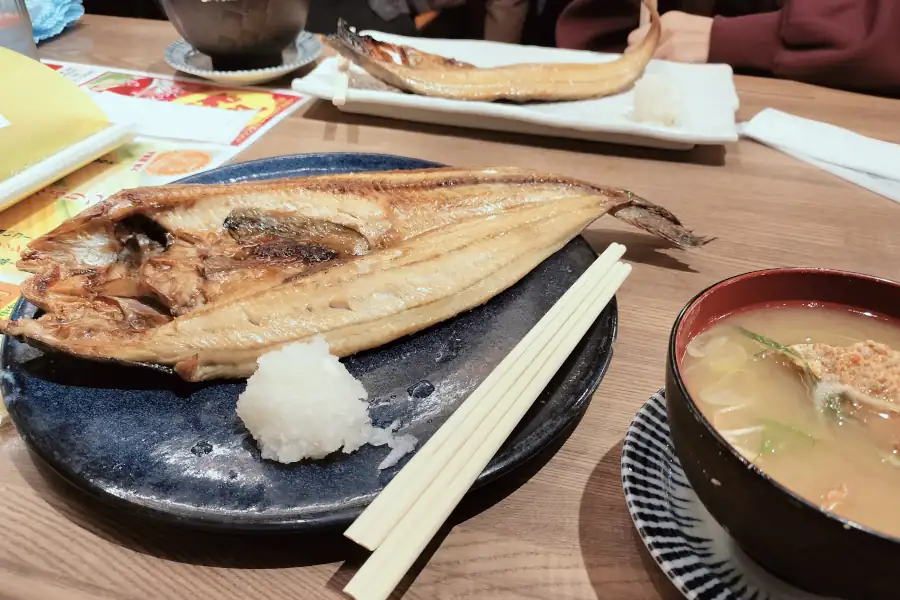 そのうちの一軒、大磯で朝ご飯です。大きなホッケの焼き魚はやはり北海でなければ食べられません。