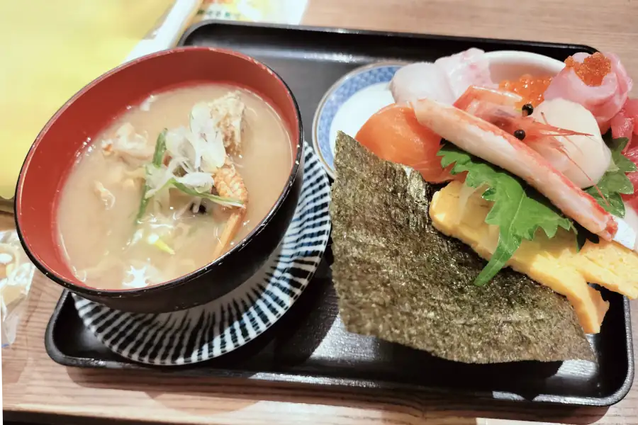 海鮮どんとカニ汁をいただきましたが朝からお腹いっぱいでした。