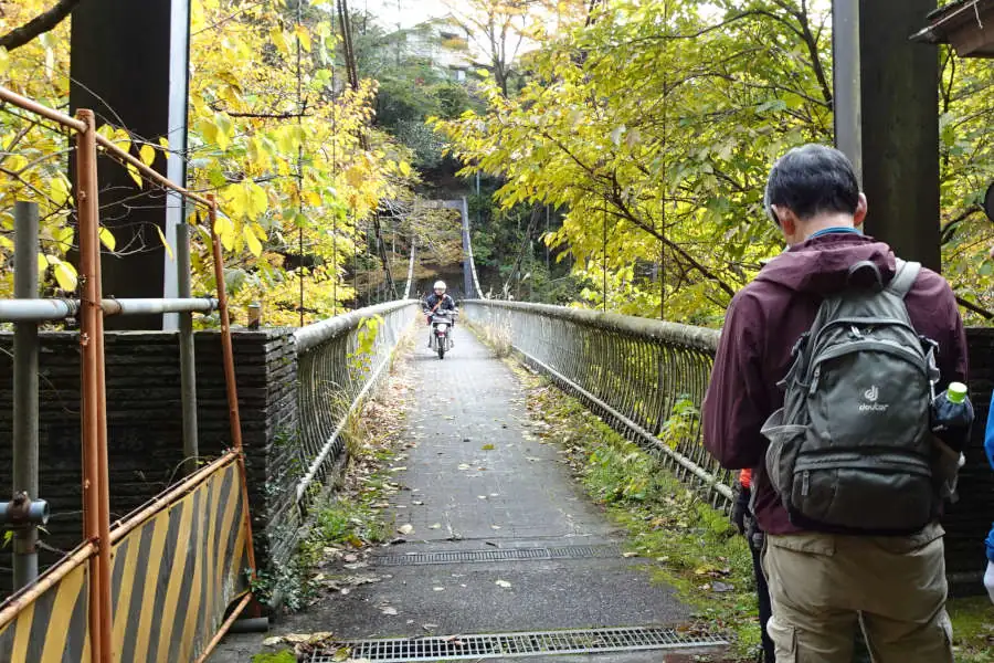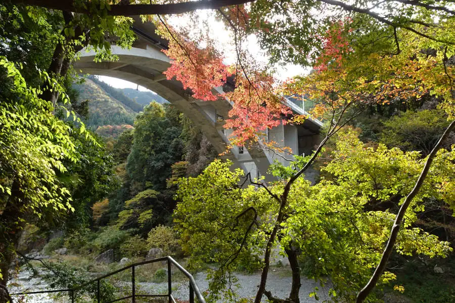 紅葉の御岳橋をくぐりしばらく歩くと杣の小橋です。ここから紅葉の坂道をわずかに登ると車を停めた御岳苑地でした。