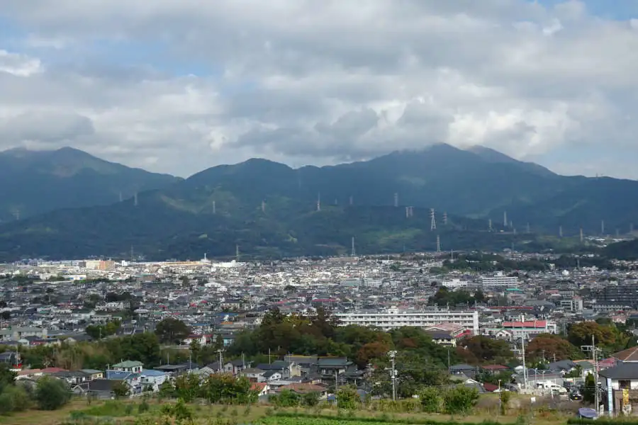 渋沢の町並みの先に丹沢の山並み