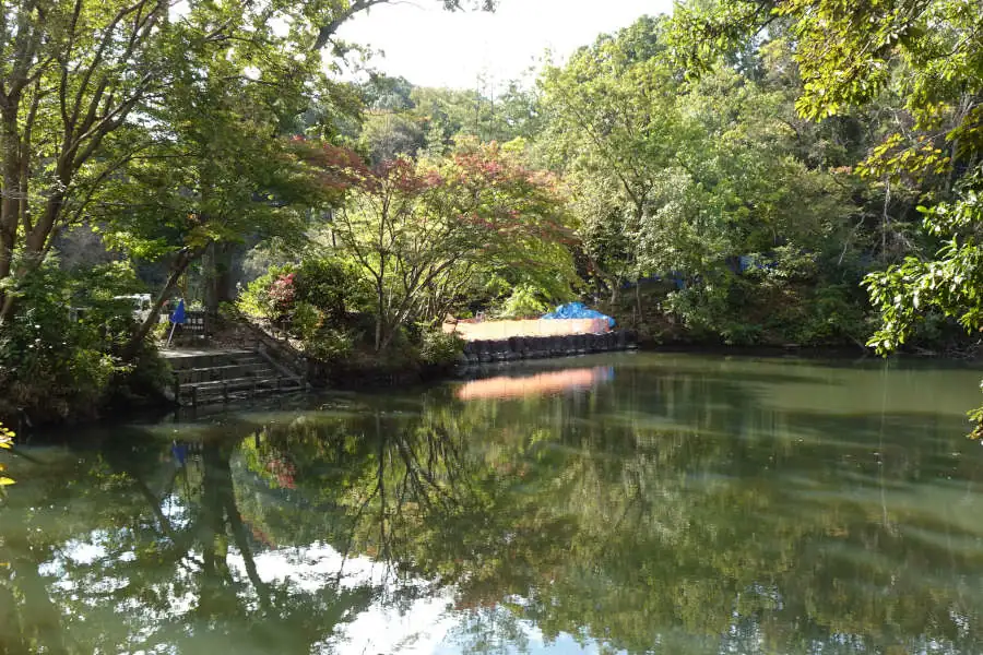 それでも木々の緑を湖面に映しています。しばらくすると色付いた紅葉を楽しむことができるでしょう。