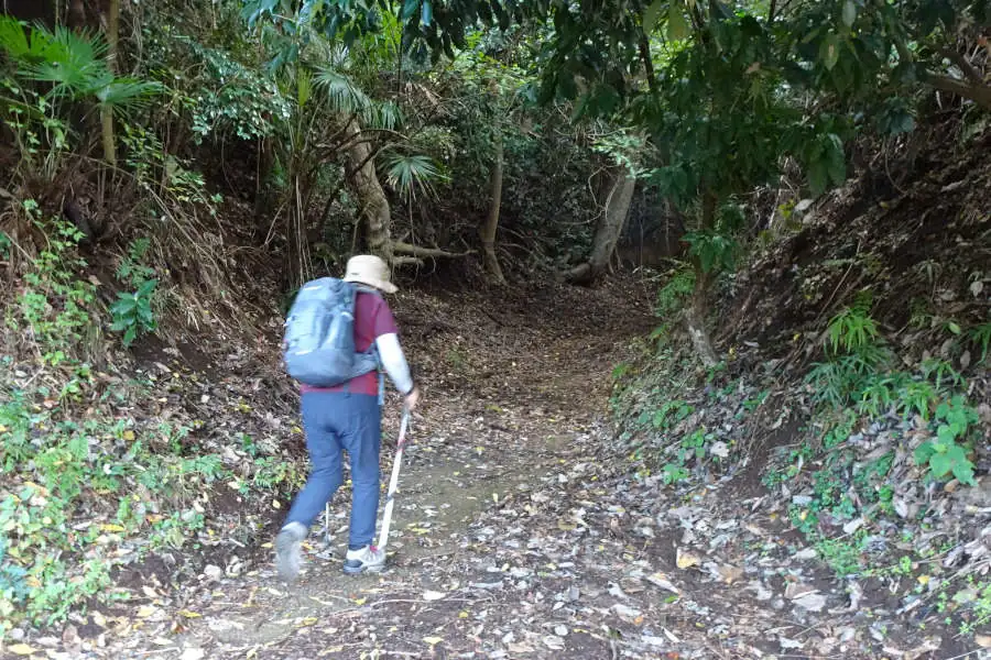 栃窪の休憩所から暗い山道を登り