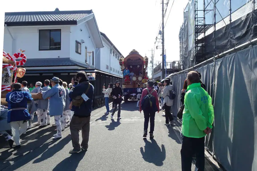 長徳寺の前には土蔵造りの田村酒造、この日は福生蔵開きが行われているようで蔵出しのお酒を目当てに長い行列ができています。お祭りの山車も出ていて祭囃子が聞こえていました。